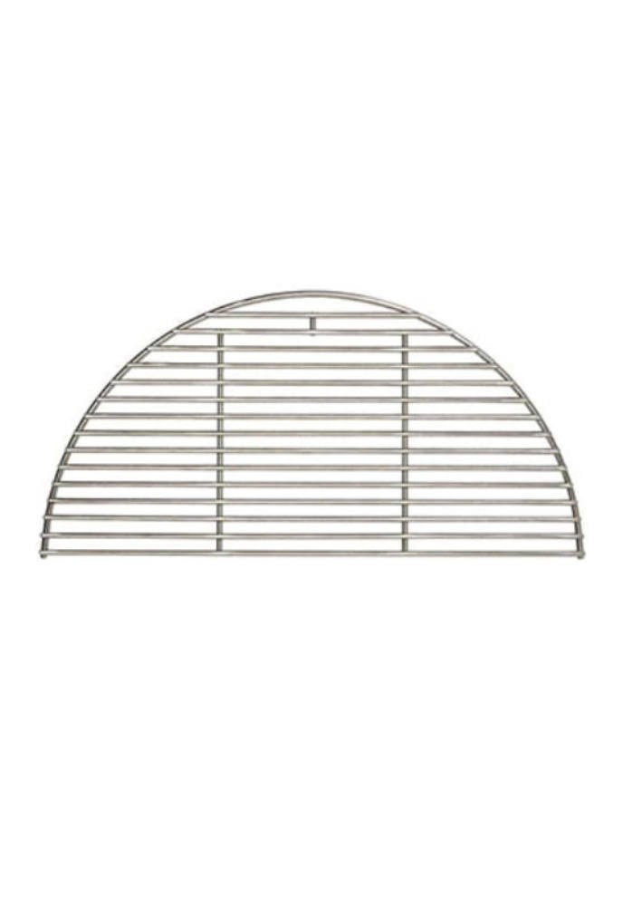 Hagyományos rozsdamentes acél félkör alakú grill rács, mely egyedülállóan vékony fémrudakból áll, hogy a faszénből áradó hőből minél kevesebbet fogjon fel.